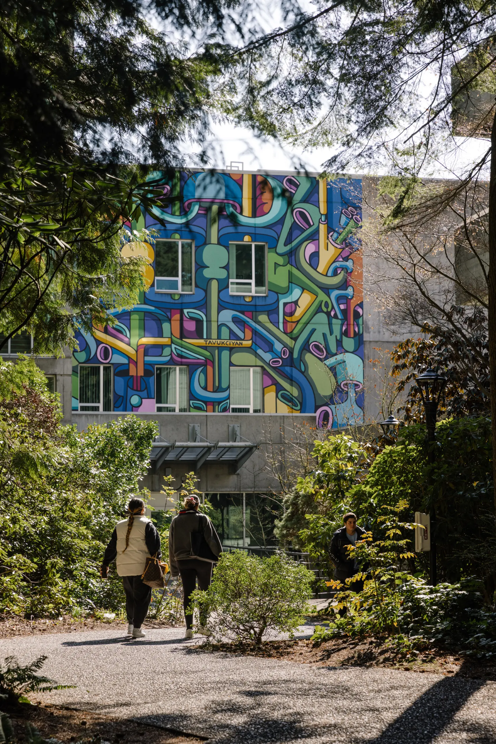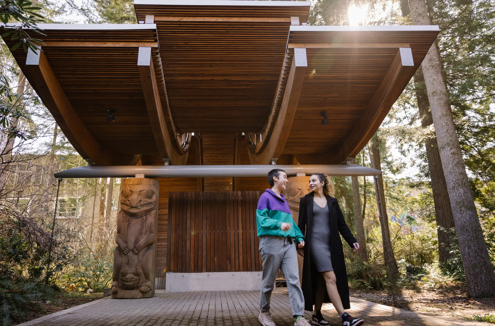 Der Campus selbst liegt am Waldrand und hat eine überschaubare Größe. Er ist sehr modern, greift durch Holzkonstruktionen, zahlreiche Anspielungen auf den Ozean und die Kultur der First Nations zugleich aber auch seine natürliche Umgebung architektonisch auf.